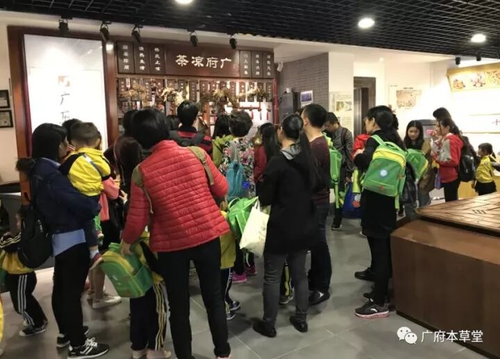 另外一批的小朋友跟着讲解员参观整个广府本草博物馆,了解药膳和汤文化,学习各个人群的养生知识,参观学习各种药材的来源功效等等。