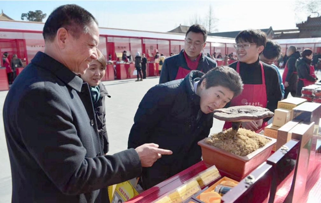 图为李明焱(左一)为观展嘉宾现场讲解老字号特色产品。金顶红墙下,人潮涌动。传统小吃、非物质文化遗产工艺品和中医药产品等纷纷登场亮相,令人目不暇接。 ...[详情]