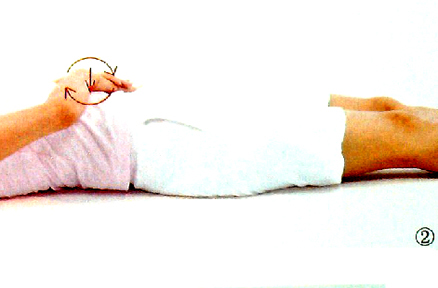 经常按摩腹部可以增强血液供应,加强胃的抵抗力,并促进胃肠蠕动,有利于食物的消化。如将十指交叉并拢,波浪式推压腹部,如图①;在腹部任何一点缓缓用力向下点按,达到不能再按的深度,然后慢慢抬起。一个部位可点按3~5次,顺序由上而下,由左至右,逐渐移位,如图②。早晨和晚上各进行1次。但饱食后或有急性炎症、肿瘤、出血等情况时,不宜按摩。