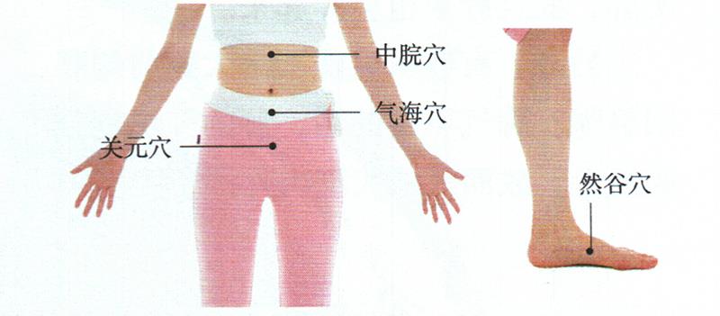 2.将拇指指尖,按于然谷穴上,由轻渐重地掐压半分钟到1分钟。