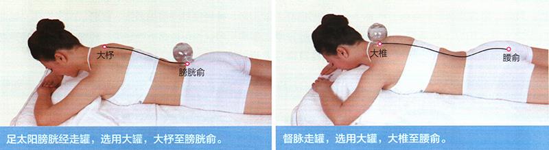 选用穴位:足太阳膀胱经的大杼至膀胱俞,督脉的大椎至腰俞。