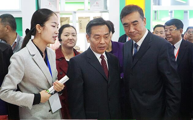 图为启用仪式后,闫树江(前中)与李斌(前右一)在中药城内参观。