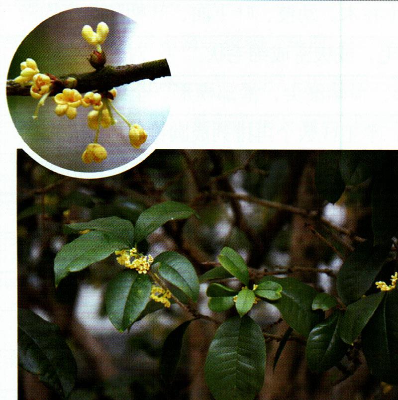 【别名】九里香、桂花。【识别特征】常绿乔木。树皮灰褐色。叶 单叶对生,叶片 椭圆状披针形,全缘或上半部具细锯齿,腺点在两面连成小 水泡状突起,革质。花 聚伞花序簇生于叶腋,每腋内有花 多朵,花黄白色、淡黄色、黄色或橘红色,气芳香。果 歪 斜,椭圆形,呈紫黑色。【生…
