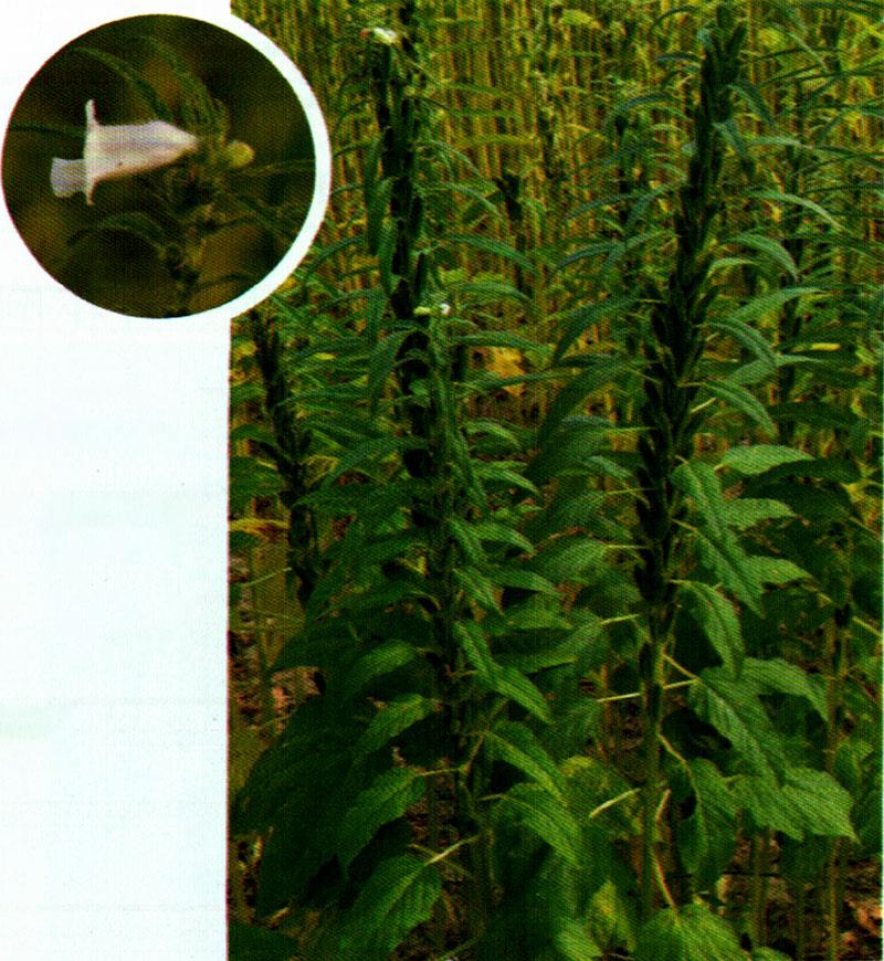 【别 名】胡麻、脂麻、油麻。【识别特征】一年生直立草本。中空或具有白色髓部,微有毛。叶 矩圆形或卵形,下部叶常掌状3裂,中部叶具齿缺,上部叶近全缘。花 单生或2~3朵同生于叶腋内;花萼裂片披针形,被柔毛;花冠筒状,白色而常有紫红 色或黄色的彩晕。果 蒴果矩圆形,具纵…